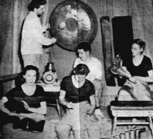 It was at the Cornish School that Cage first met Merce Cunningham, a young man seven years his junior who hailed from Centralia, Washington, a rural part of the state, some 80 miles south. Cunningham had entered the theater program with aspirations of becoming an actor, but quickly took to dance and thus was often in Cage's presence in Bird's modern dance classes. (Cunningham later recalled that Cage was excitedly referred to in whispers by the Cornish students as the "handsome new teacher in the red sweater"). Other faculty members in residence at Cornish were Margaret Jansen and Doris Dennison, both of whom played in Cage's ensemble, known as the Cage Percussion Players. Cunningham occasionally played with them, and Xenia, Cage’s young wife, also a transplant from Los Angeles, was a regular member. Cage referred to them all as his “literate amateur musicians.”