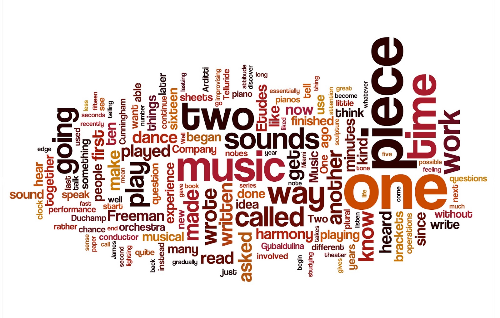 throughout. Here's a little Wordle Cloud of all ten of Cage's extemporized texts: